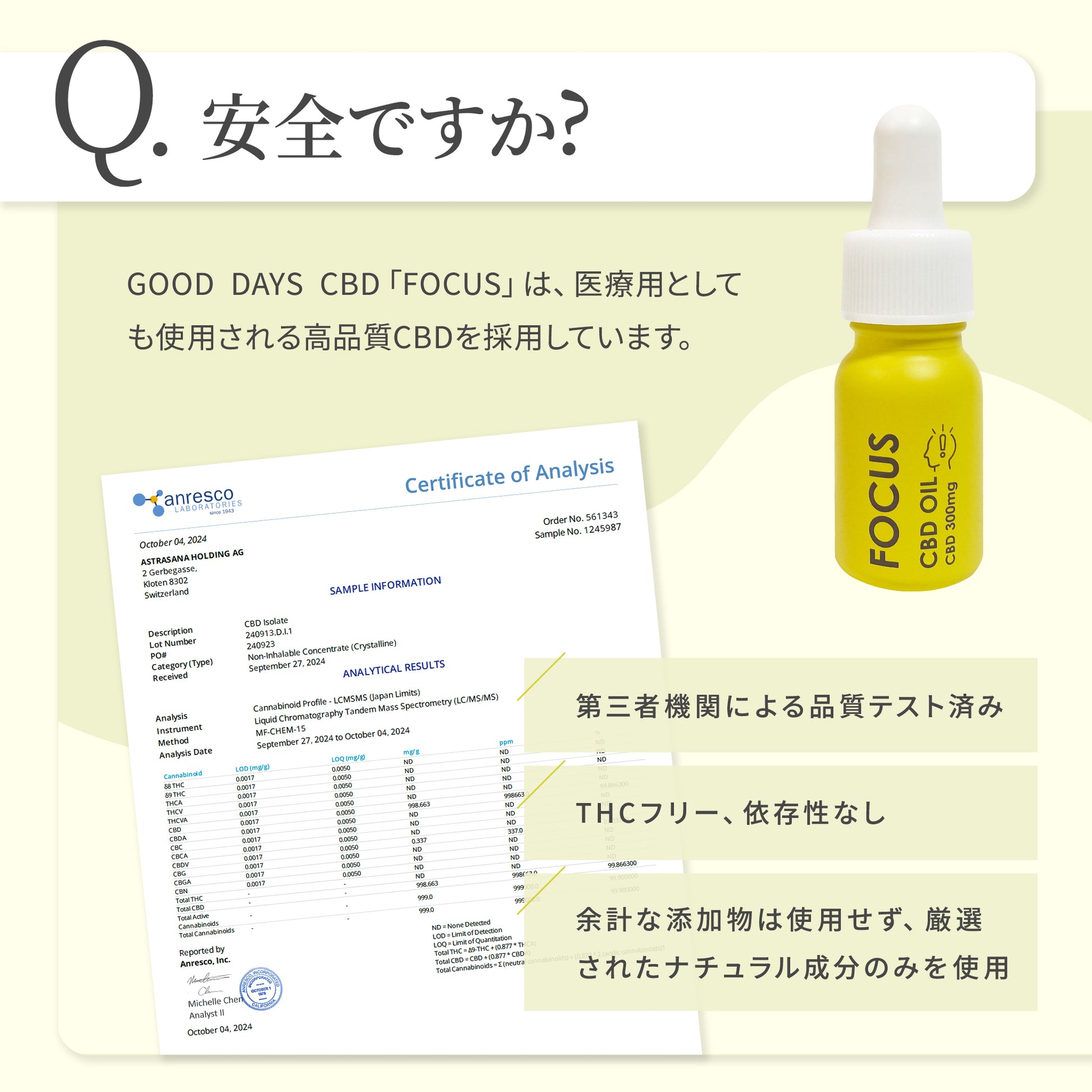 【販売開始キャンペーン開催中】GOOD DAYS CBD FOCUS|集中&ストレスケア CBDオイル|医療グレードCBD配合(11ml 約22回分)|送料無料 仕事・勉強・子育て中にも
